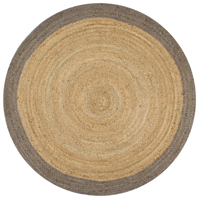 Vloerkleed handgemaakt met donkergrijze rand 150 cm jute