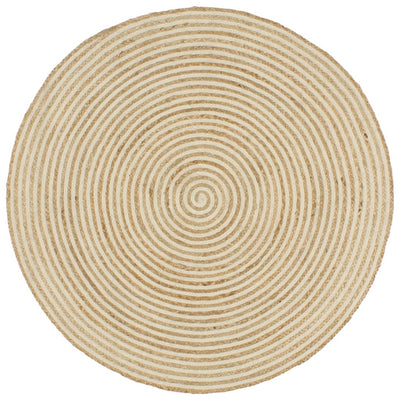 Vloerkleed handgemaakt met spiraal ontwerp 120 cm jute wit